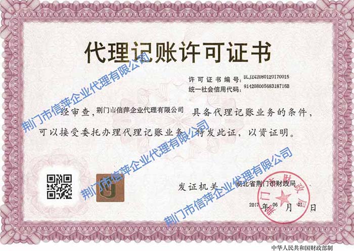 荊門(mén)市信萍企業(yè)代理有限公司(0724xp.com)代理荊門(mén)注冊(cè)公司、荊門(mén)公司記賬、辦理營(yíng)業(yè)執(zhí)照、資質(zhì)代辦等服務(wù)!
